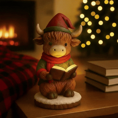 Imagine a cozy winter night ✨— the fireplace glowing, a Christmas tree twinkling, and this adorable cow is sitting quietly on your nightstand with a book in hand, radiating a warm glow📖. It’s not just a night light, but a fairy-tale friend that guards your dreams, warms your heart, and keeps the Christmas magic alive.